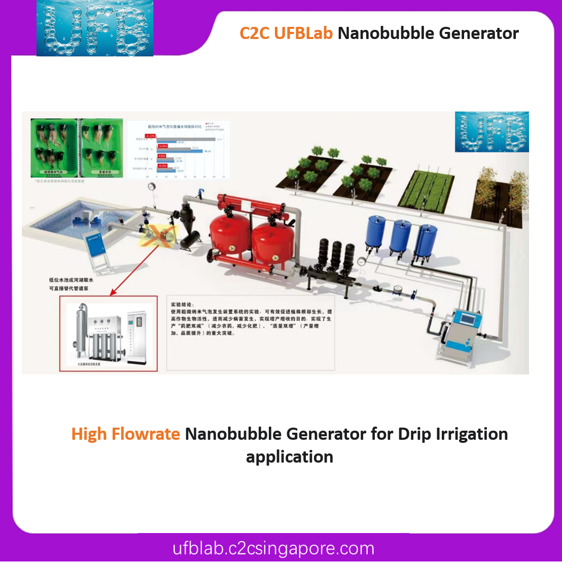 Skid style Nanobubble Generator with large flow rate (upto 1000 m3/hr) and can be used for large scale agriculture irrigation, aquaculture and wastewater treatment applications.
